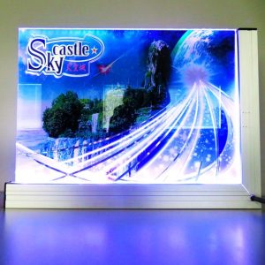 輝くレフプリズム印刷とレーザー加工で作製した古城のアクリルお守りです。