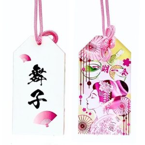 輝くレフプリズム印刷とレーザー加工で作製した舞妓のアクリルお守りです。